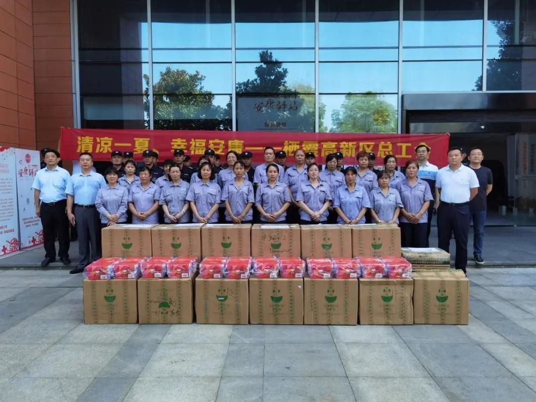 時值酷暑,高溫難耐。棲霞高新區(qū)開展“清涼一夏、幸福安康”活動,高新區(qū)領(lǐng)導(dǎo)班子看望慰問了高溫下堅守崗位的保潔、保安、樓棟長等一線工作人員,為他們送去了防暑降溫物品,感謝他們在炎炎夏日為維護園區(qū)秩序,保障環(huán)境衛(wèi)生做出的貢獻。并叮囑一線職工們重視安全防護,注意防暑降溫。