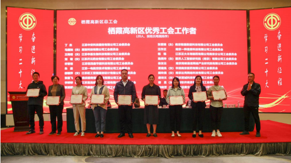 棲霞高新區(qū)黨工委常務(wù)副書記、總工會(huì)主席楊靜,黨工委委員、紀(jì)工委書記顧戟為優(yōu)秀工會(huì)工作者頒獎(jiǎng)。