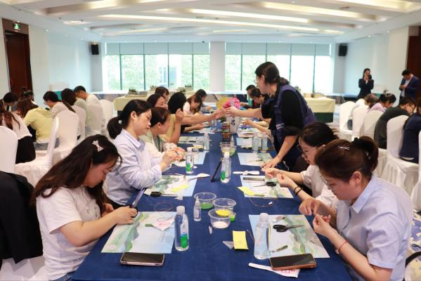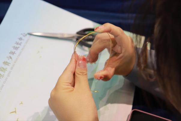 活動邀請了中國書畫聯(lián)誼會、非遺傳承人為大家介紹非物質(zhì)文化遺產(chǎn)——掐絲琺瑯技藝的產(chǎn)生、發(fā)展歷史等,并現(xiàn)場教授描繪、上膠、掐絲等制作技藝,讓職工們體驗掐絲琺瑯技藝的獨特魅力。一彎一繞、一填一晃,大家用手中的鑷子將金絲彎折成所需的形狀,掐在畫好的花紋上,借助刮刀將彩砂填入相應(yīng)的區(qū)域后小心晃平。一個個精美掐絲琺瑯粽掛件就在大家手中誕生了。