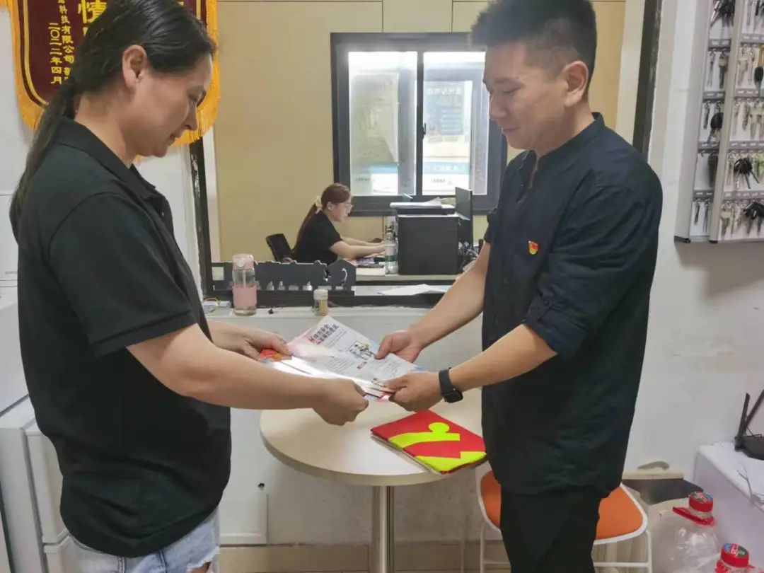 黨員同志們通過(guò)發(fā)放宣傳資料的形式向園區(qū)商戶及公寓普及安全知識(shí),并提醒大家安全無(wú)小事,功夫在平時(shí),希望以此提升大家安全意識(shí)防患于未然。