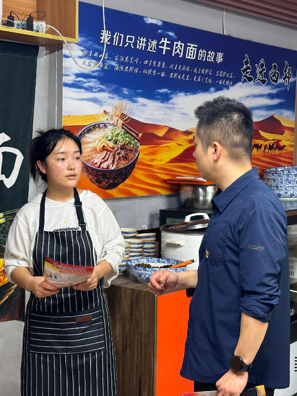 在進(jìn)行安全教育宣傳同時(shí),黨員及志愿者們對(duì)商戶及公寓開展“拉網(wǎng)式”安全隱患排查工作,志愿者們細(xì)致地檢查了滅火器的合格性、確保其存放位置處于干燥通風(fēng)且便于取用的環(huán)境、電線是否規(guī)范布設(shè)、應(yīng)急照明燈的完好性以及安全出口的暢通情況等潛在的安全隱患。