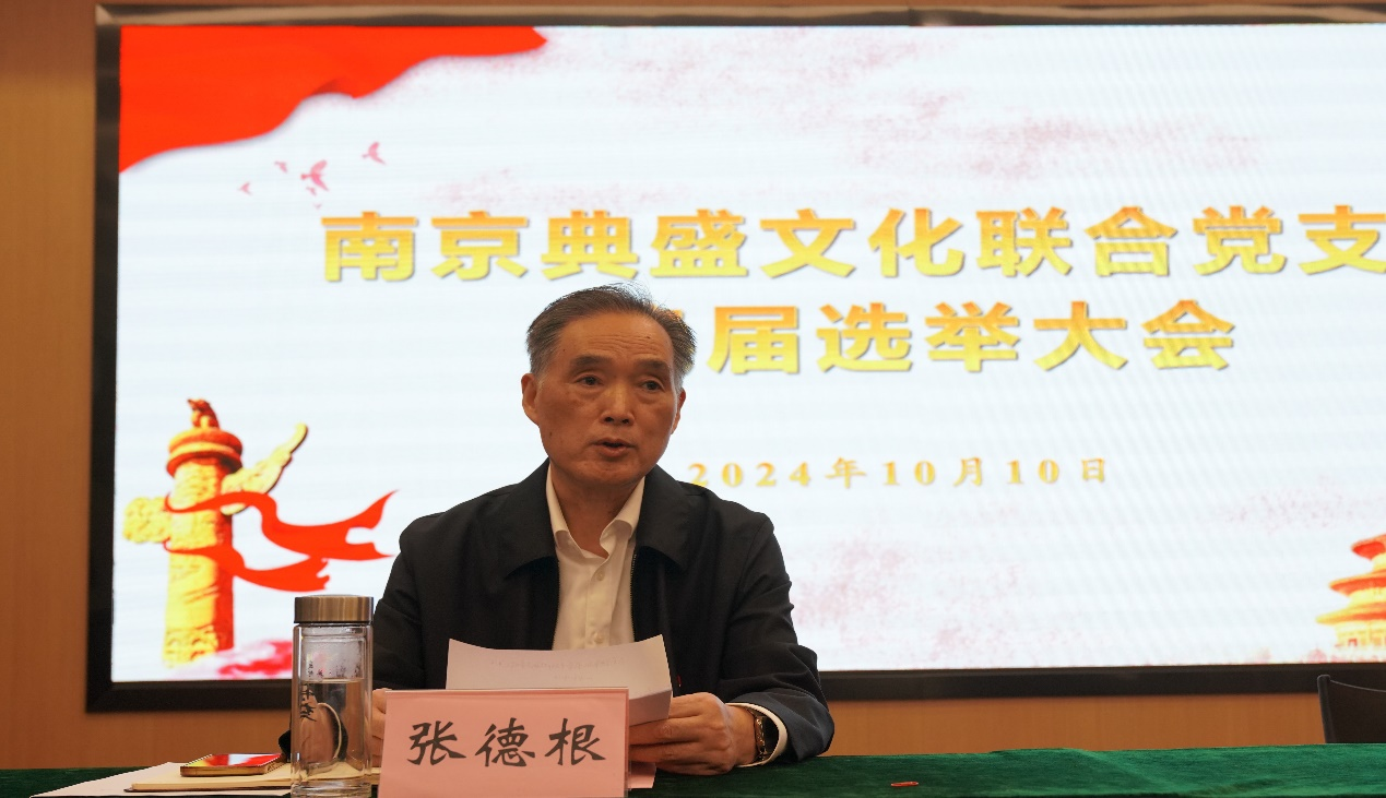 2024年10月10日,南京典盛文化聯(lián)合黨支部召開換屆選舉大會,紫東國際創(chuàng)意園黨委專職副書記張德根出席本次會議。
