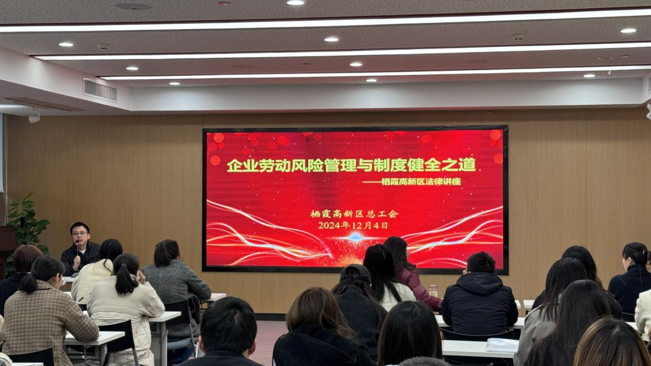 為促進(jìn)園區(qū)企業(yè)勞動關(guān)系和諧穩(wěn)定,提升勞動法律糾紛“風(fēng)險(xiǎn)免疫力”,12月4日下午,棲霞高新區(qū)總工會特邀北京德和衡(南京)律師事務(wù)所資深律師,為高新區(qū)企業(yè)舉辦“企業(yè)勞動風(fēng)險(xiǎn)管理與制度健全之道”專題培訓(xùn)講座,近60名企業(yè)人事負(fù)責(zé)人參加本次活動,活動現(xiàn)場氣氛熱烈。