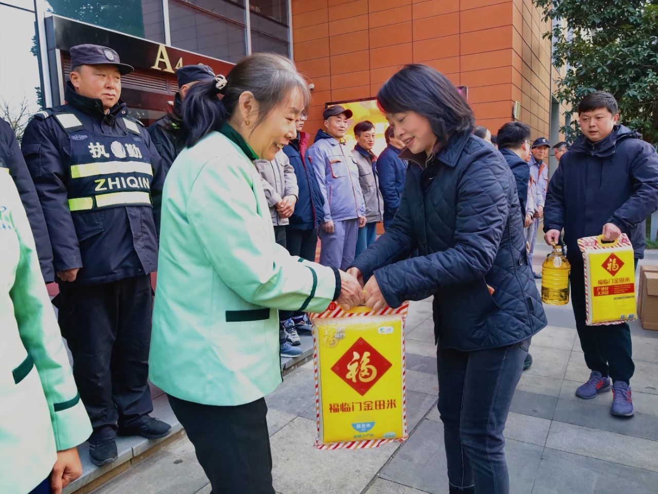 活動中,棲霞高新區(qū)黨工委常務副書記、總工會主席楊靜向奮戰(zhàn)在寒冬一線的物業(yè)保潔、保安、工程維修人員表示感謝,并送上新春祝福和暖心禮包,叮囑大家繼續(xù)堅守崗位、履行職責,把物業(yè)工作做細做實,服務好園區(qū)企業(yè)和職工群眾。