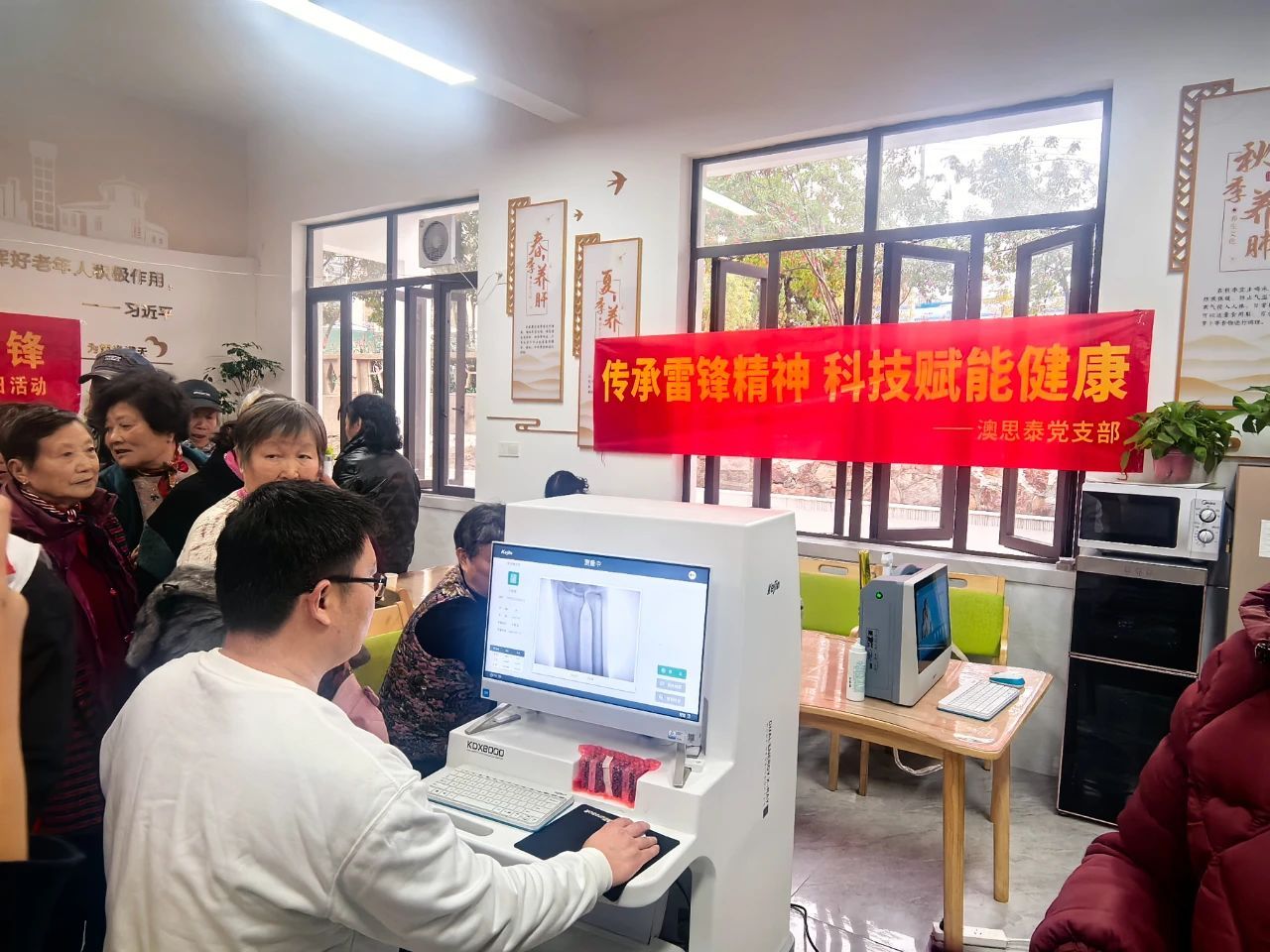 活動現(xiàn)場,棲霞高新區(qū)澳思泰生物科技有限公司黨支部發(fā)揮專業(yè)優(yōu)勢,搭建起臨時體檢站,為居民提供體脂檢測、心肺功能評估、骨密度篩查等現(xiàn)代化健康檢測服務(wù),通過科學(xué)數(shù)據(jù)幫助中老年人及時掌握身體狀況。來自南中醫(yī)的碩博研究生黨員團(tuán)隊則發(fā)揮中醫(yī)特長,現(xiàn)場開展針灸推拿、中醫(yī)養(yǎng)生知識、慢性病調(diào)理咨詢等特色服務(wù),將課堂所學(xué)轉(zhuǎn)化為惠民實踐,受到社區(qū)群眾熱烈歡迎。