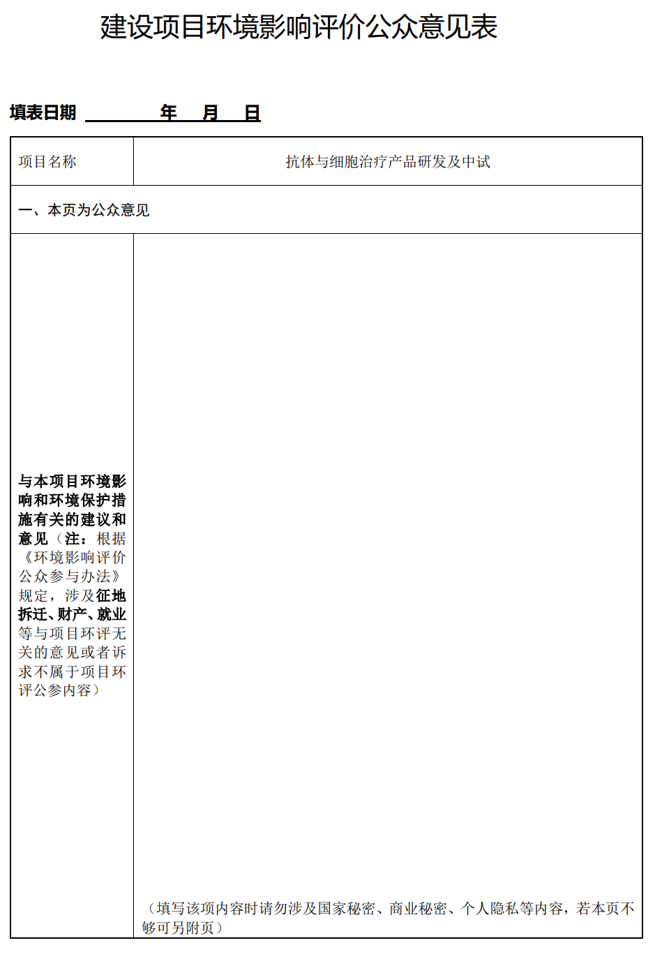 項目名稱:抗體與細(xì)胞治療產(chǎn)品研發(fā)及中試;