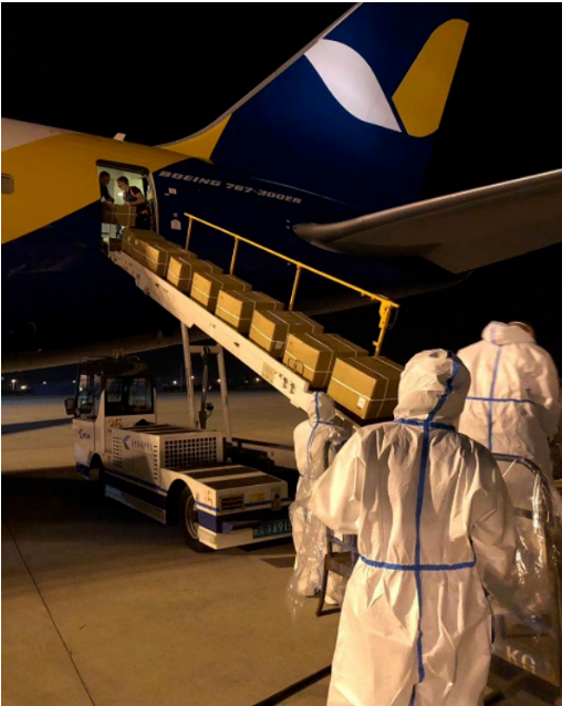 4月30日凌晨,兩架滿載著口罩、防護(hù)服、隔離衣等各類防疫物資共計(jì)5224箱,456立方的包機(jī)從南京出發(fā),飛往俄羅斯。飛機(jī)上這次防疫物資的供應(yīng)方,就是棲霞高新區(qū)企業(yè)——江蘇開元醫(yī)藥化工有限公司。