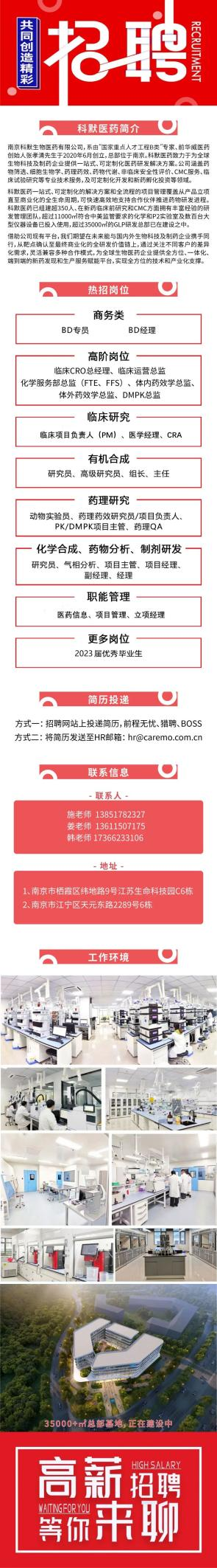【求賢招才】棲霞高新區(qū)企業(yè)——南京科默生物醫(yī)藥有限公司招聘正在進(jìn)行中