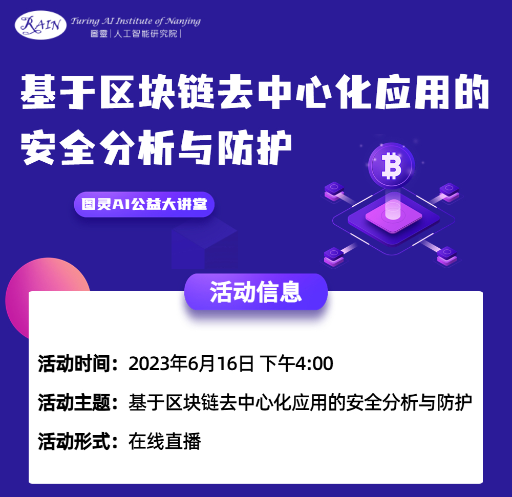 【預(yù)告】圖靈AI公益大講堂 | 基于區(qū)塊鏈去中心化應(yīng)用的安全分析與防護(hù)