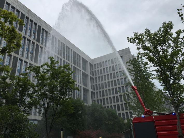 現(xiàn)場火勢蔓延迅猛,由于火勢較大現(xiàn)場救援力量已無法控制火勢,高新區(qū)第一時間向區(qū)應(yīng)急辦請求支援。接到救援請求,區(qū)應(yīng)急辦通知相關(guān)支援部門立即趕赴現(xiàn)場。區(qū)交警大隊到達后開始控制疏導(dǎo)周邊交通;區(qū)醫(yī)院到達后在救護車旁設(shè)立救護點,對受傷人員進行救治;區(qū)公安局到達后組織人員疏散和警戒;區(qū)環(huán)保局到達后開展空氣和水的檢測;區(qū)安監(jiān)局?jǐn)y化工專家到達現(xiàn)場,在了解了實驗室化學(xué)品目錄及現(xiàn)場情況后,建議用霧狀水對著火區(qū)域進行滅火,區(qū)消防大隊增援力量到達后按專家建議進行滅火,同時組織人員搜救和云梯車高空救援;區(qū)委宣傳部負責(zé)現(xiàn)場信息公開和發(fā)布;在現(xiàn)場總指揮區(qū)安監(jiān)局局長葉余豐的統(tǒng)一指揮下,高效調(diào)動、充分整合多線力量和各種資源,形成處置合力,“大火”被成功撲滅,人員被安全救出,演練圓滿結(jié)束。