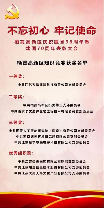 決定指出今年是中國共產(chǎn)黨成立98周年,是新中國成立 70 周年,也是決勝全面建成小康社會、實(shí)施“十三五”規(guī)劃的關(guān)鍵之年。為激勵各基層黨組織和廣大黨員堅(jiān)定信念,立足崗位,履職盡責(zé),奮發(fā)有為,高新區(qū)工委決定對周璇等25名優(yōu)秀共產(chǎn)黨員、郝生健等10名優(yōu)秀黨務(wù)工作者、中共南京華威醫(yī)藥科技集團(tuán)有限公司支部委員會等6個先進(jìn)黨組織以及“學(xué)習(xí)強(qiáng)國”知識競賽獲獎黨組織予以表彰。