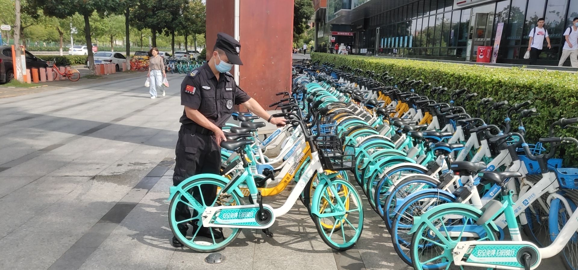 將園區(qū)門口亂停亂放的共享單車清理至劃線區(qū)域框內、勸阻攤販占道經營,遮擋道路現象、保障進出機動車道、人行通道暢通無阻。
