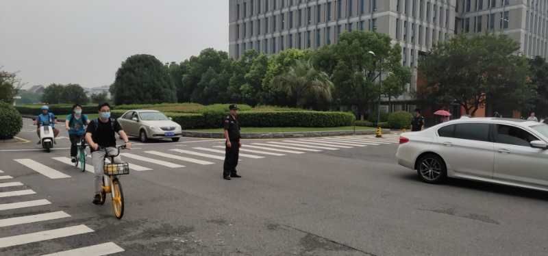 保安員在道路交接口、停車場定人定崗引導交通,一是引導機動車輛減速慢行,二是防止非機動車輛、行人穿插,避免交通事故發(fā)生,保障園區(qū)道路安全。