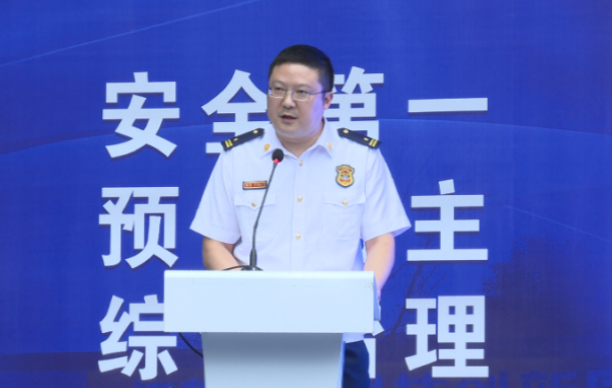 區(qū)消防大隊(duì)辦公室主任承奇就實(shí)驗(yàn)室化學(xué)品火災(zāi)事故的處置、救援工作進(jìn)行宣貫。