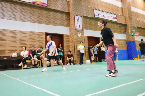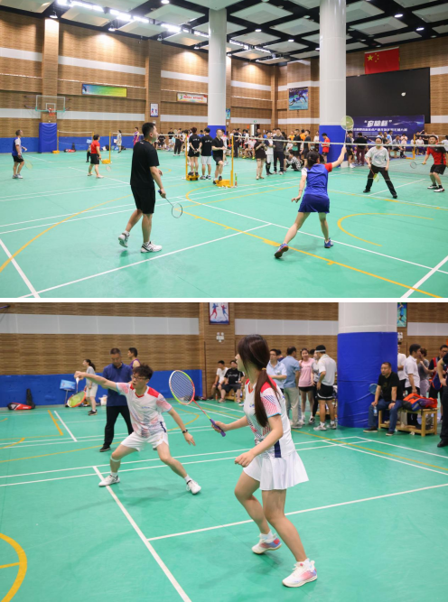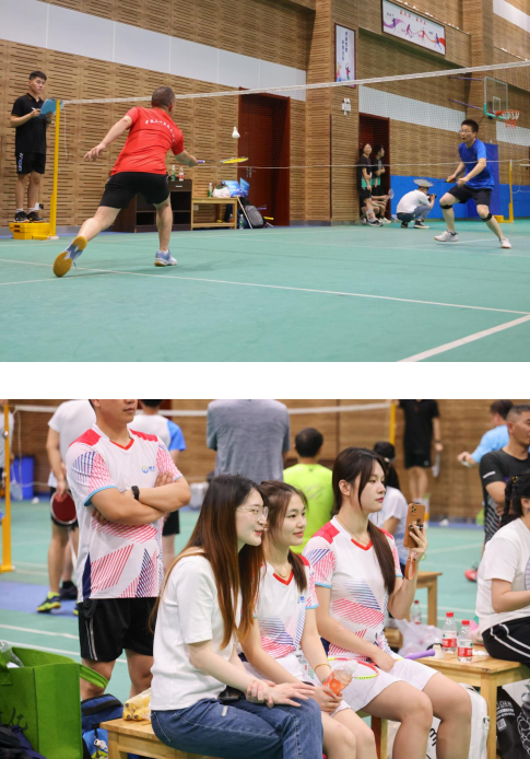 混雙比賽同樣熱烈,男女選手搭配發(fā)揮靈活策應(yīng)的技術(shù),配合默契、精誠合作、攻守兼?zhèn)?。全場觀眾為之掌聲不斷,選手們拼盡全力,完成一次次精彩的回球,在場上展現(xiàn)出了靈動的腳法和精湛的球技,場下休息的其他單位選手也毫不吝惜自己的贊美之意,大聲為場上選手加油喝彩。
