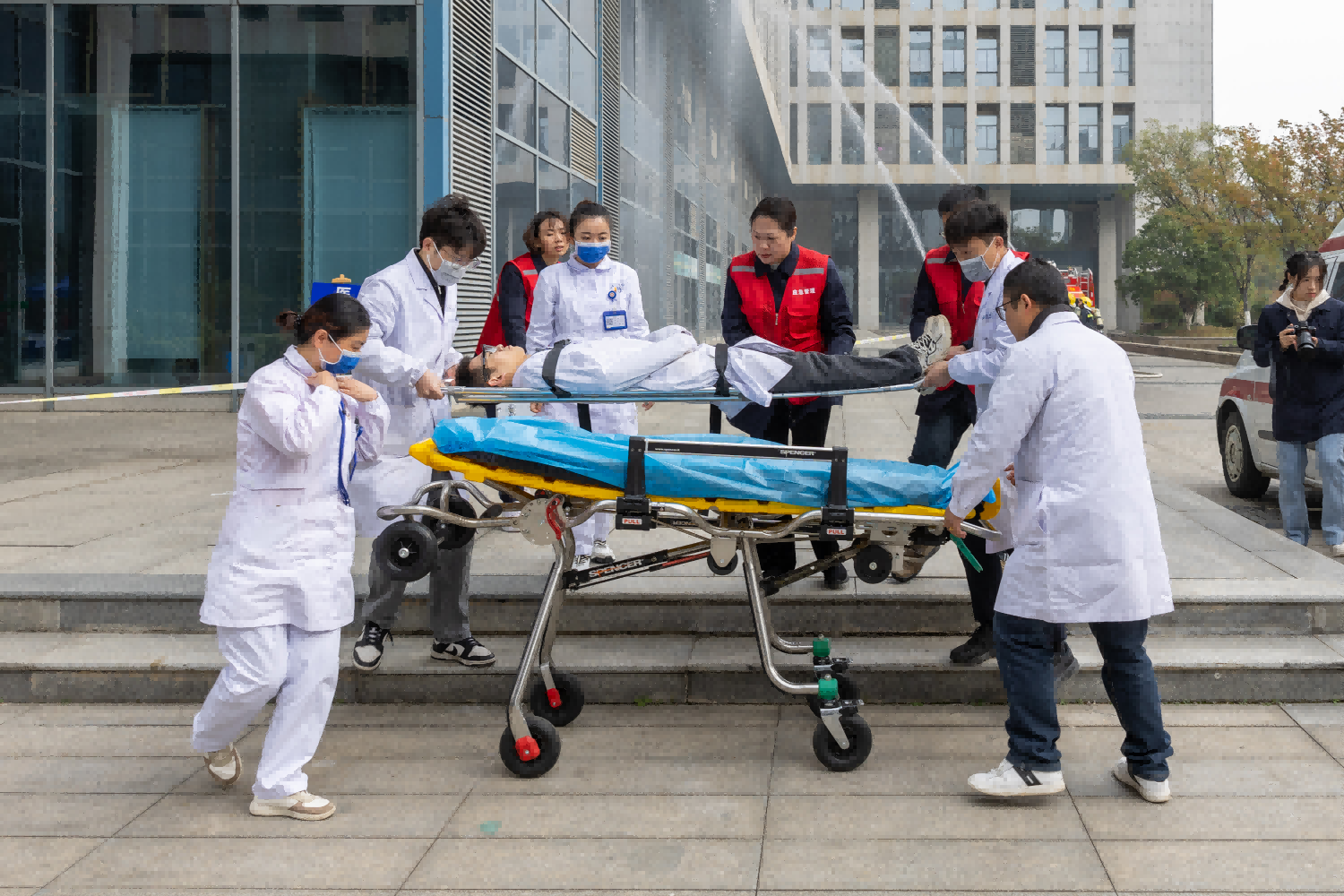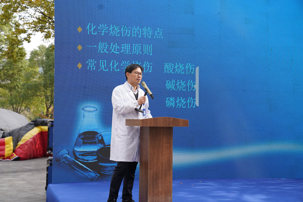 區(qū)消防救援大隊、棲霞社區(qū)衛(wèi)生服務(wù)中心就實驗室?;坊馂?zāi)事故處置、人員傷后救援進(jìn)行現(xiàn)場授課。