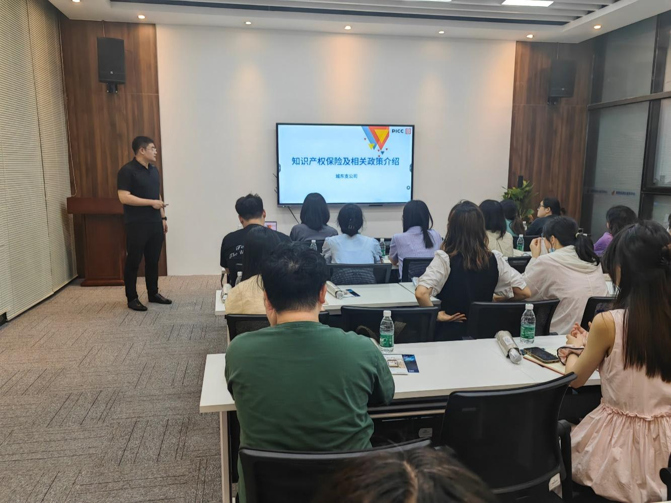 楊陽重點(diǎn)介紹了專利申請(qǐng)費(fèi)用補(bǔ)償、專利執(zhí)行和專利被侵權(quán)損失三項(xiàng)核心保險(xiǎn)產(chǎn)品,為企業(yè)分擔(dān)專利申請(qǐng)駁回、專利侵權(quán)和被侵權(quán)風(fēng)險(xiǎn),幫助企業(yè)更好地在生產(chǎn)經(jīng)營中保護(hù)自身知識(shí)產(chǎn)權(quán)權(quán)益、抵御知識(shí)產(chǎn)權(quán)風(fēng)險(xiǎn)。會(huì)后,參會(huì)企業(yè)就保險(xiǎn)產(chǎn)品購買、理賠、使用范圍等積極與培訓(xùn)老師交流、討論。