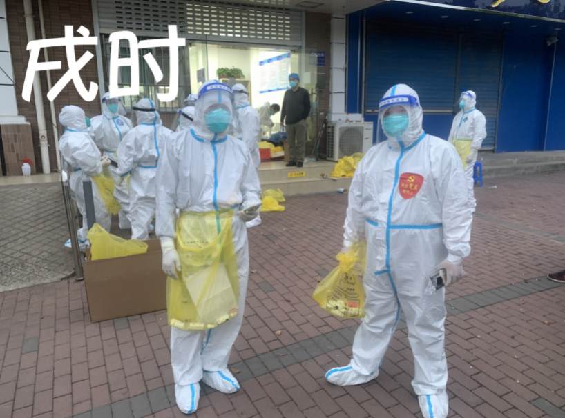 連續(xù)工作24小時,沒有喝水,嗓子冒煙,衣服濕透,但是他們熱情不減,竭盡所能。截至15日凌晨3點(diǎn),他們完成32棟共2110人的上門核酸檢測。