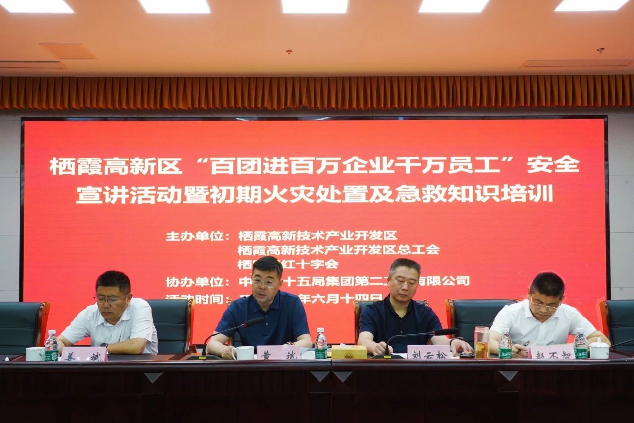 今年6月是全國(guó)第23個(gè)、南京市第31個(gè)“安全生產(chǎn)月”。6月14日,棲霞高新區(qū)圍繞“人人講安全、個(gè)個(gè)會(huì)應(yīng)急——暢通生命通道”主題,開(kāi)展“百團(tuán)進(jìn)百萬(wàn)企業(yè)千萬(wàn)員工”安全宣講活動(dòng)和初期火災(zāi)處置及急救知識(shí)培訓(xùn)。管委會(huì)主任黃斌作專題宣講,副主任劉云松主持此次活動(dòng),安全環(huán)保部部長(zhǎng)趙不智、中鐵二十五局集團(tuán)第二工程有限公司安全總監(jiān)姜斌以及智谷園區(qū)入駐企業(yè)代表參加此次活動(dòng)。