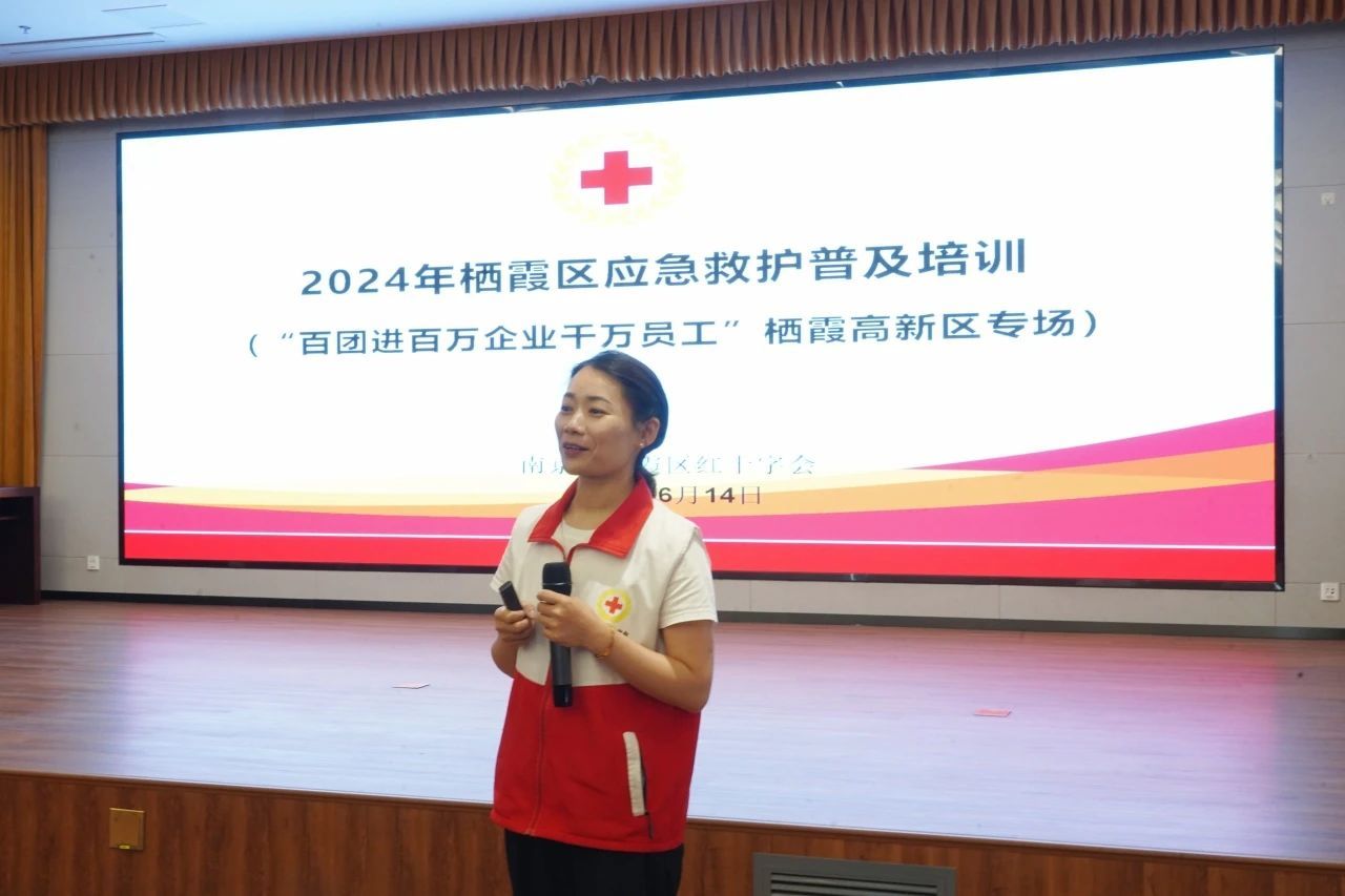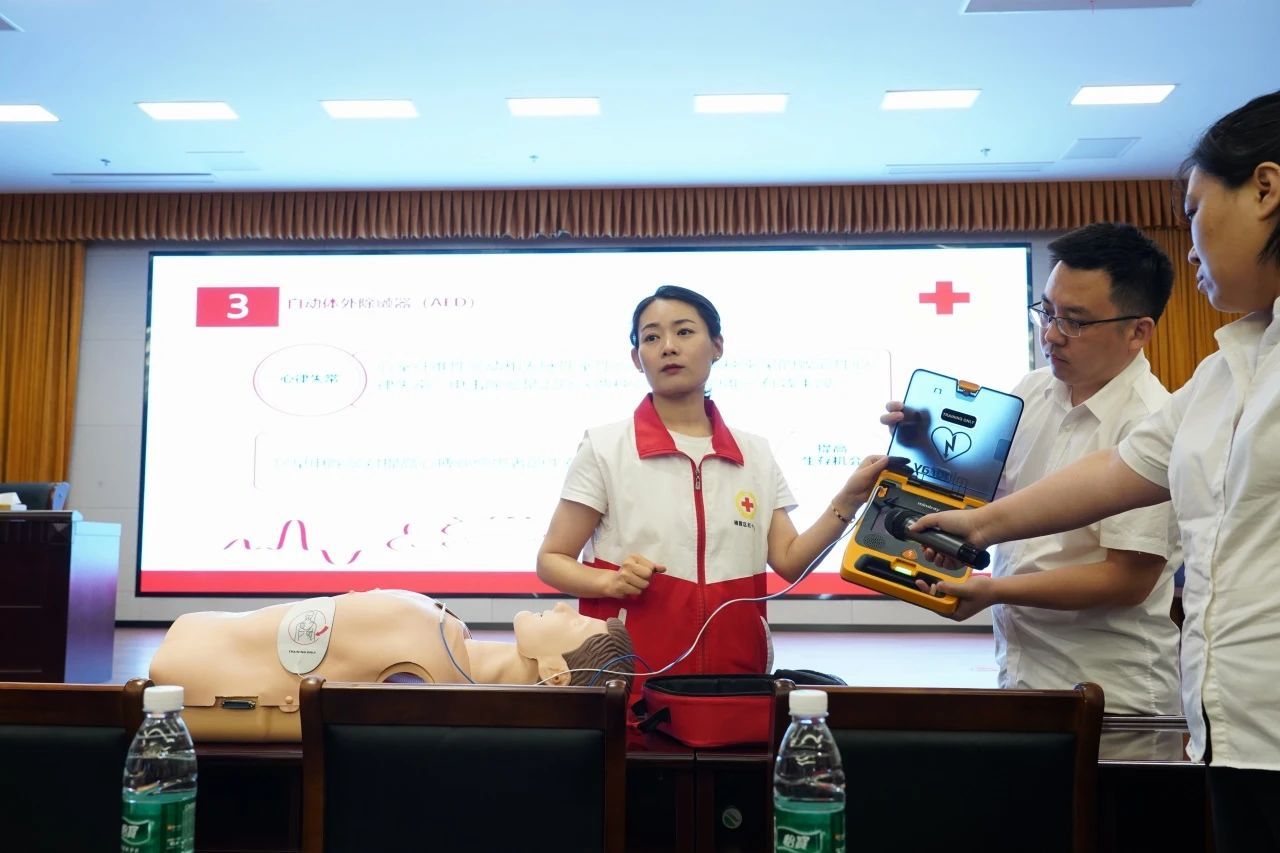 南京市紅十字會(huì)主任導(dǎo)師祁李萍從如何開(kāi)展心肺復(fù)蘇操作、人員中暑急救、緊急外傷處置等方面開(kāi)展了緊急救護(hù)知識(shí)培訓(xùn)。