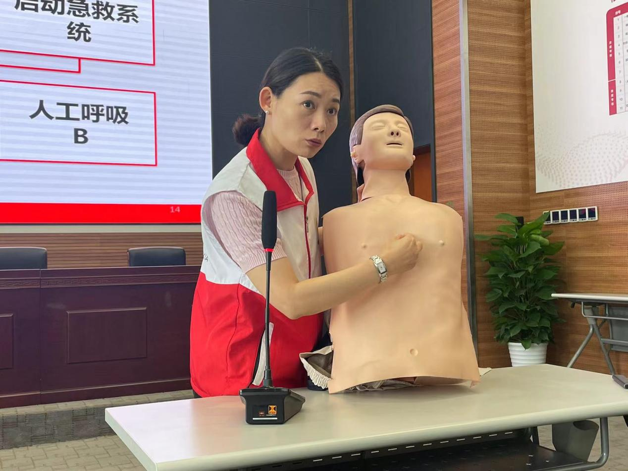 本次活動(dòng)邀請(qǐng)南京市紅十字會(huì)主任導(dǎo)師祁李萍,從心肺復(fù)蘇操作、體外自動(dòng)除顫儀的使用、開放性外傷先期處置等方面,開展緊急救護(hù)知識(shí)培訓(xùn)。