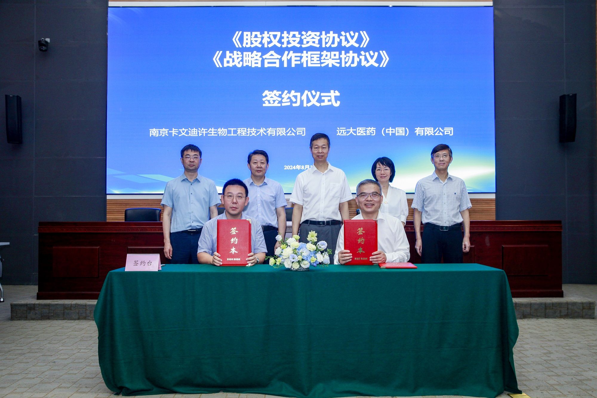 8月3日上午,棲霞高新區(qū)入園企業(yè)南京卡文迪許生物工程技術有限公司與遠大醫(yī)藥(中國)有限公司戰(zhàn)略合作簽約儀式成功舉行。棲霞區(qū)委常委、區(qū)政府常務副區(qū)長、棲霞高新區(qū)工委書記郭昌標,棲霞區(qū)委常委、統(tǒng)戰(zhàn)部部長章晶,棲霞高新區(qū)管委會主任黃斌,棲霞區(qū)委統(tǒng)戰(zhàn)部副部長、區(qū)工商聯(lián)黨組書記王俊,棲霞區(qū)工商聯(lián)黨組成員、副主席彭中華及高新區(qū)相關負責同志,中國遠大集團有限公司醫(yī)藥戰(zhàn)略管理總部總經(jīng)理朱飛鵬、遠大醫(yī)藥(中國)有限公司董事局主席兼總裁唐緯坤、南京卡文迪許生物工程技術有限公司董事長許永翔等出席了本次簽約儀式。