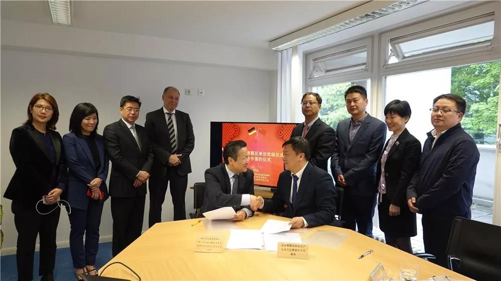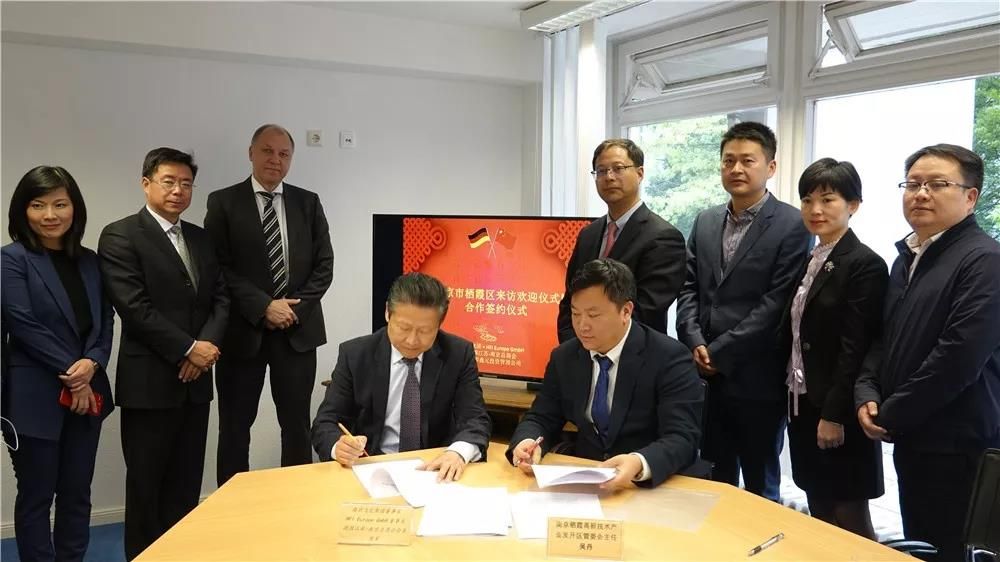 最后,在與會(huì)嘉賓的見(jiàn)證下,棲霞高新區(qū)主任吳丹先生和與HFI Europe GmbH董事長(zhǎng)侯軍先生簽署了“南京歐洲(德國(guó))海外協(xié)同創(chuàng)新中心合作協(xié)議”、“中德科技交流轉(zhuǎn)化中心框架合作協(xié)議”和“江蘇中德服貿(mào)產(chǎn)業(yè)合作基金戰(zhàn)略合作協(xié)議”。棲霞區(qū)將牽頭推動(dòng)南京海外協(xié)同創(chuàng)新中心在FI Europe GmbH掛牌設(shè)立,搭建起中德科技、文化等多領(lǐng)域的交流平臺(tái)。