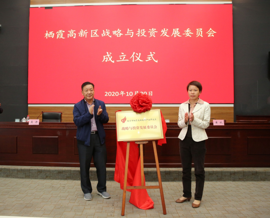活動(dòng)現(xiàn)場,胡主任與盧區(qū)長共同為棲霞高新區(qū)戰(zhàn)略與投資發(fā)展委員會揭牌,相關(guān)負(fù)責(zé)人介紹了委員會服務(wù)規(guī)劃與服務(wù)內(nèi)容。
