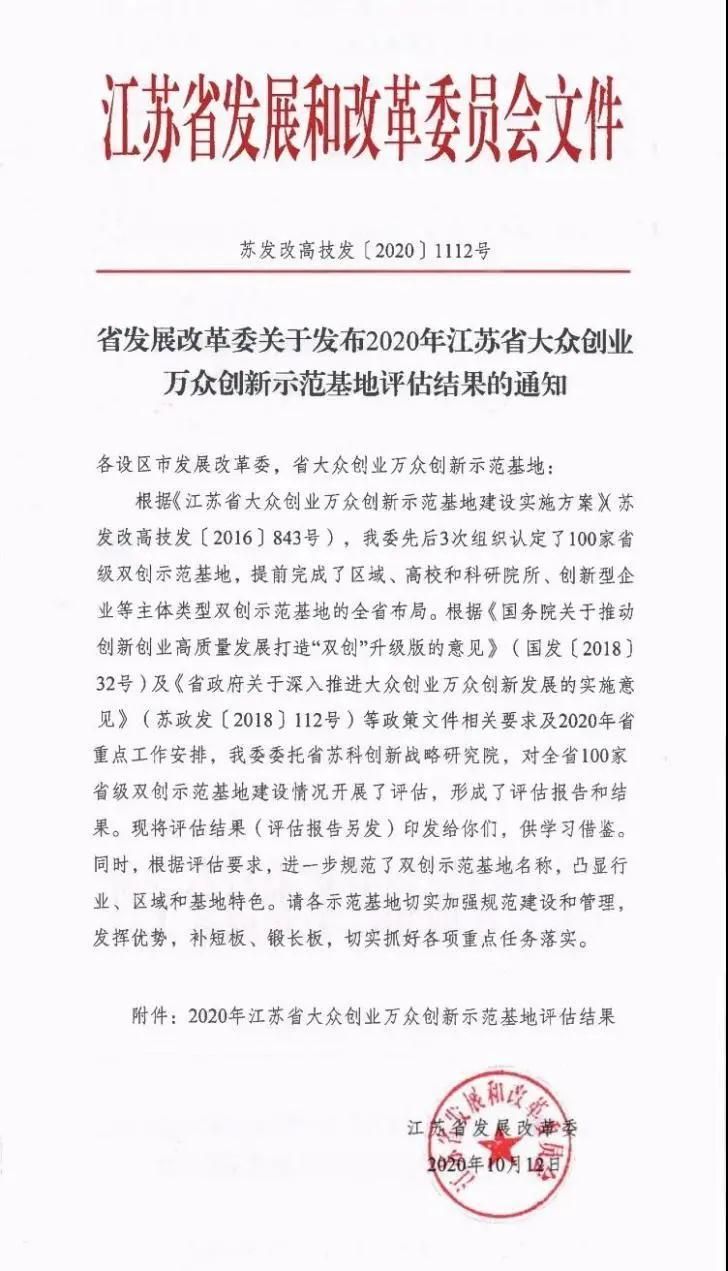 近日,省發(fā)改委發(fā)布《關(guān)于公布2020年江蘇省大眾創(chuàng)業(yè)萬眾創(chuàng)新示范基地評估結(jié)果的通知》(蘇發(fā)改高技發(fā)[2020]1112號),棲霞高新區(qū)在全省100家雙創(chuàng)示范基地中脫穎而出,獲評“優(yōu)秀”等次!