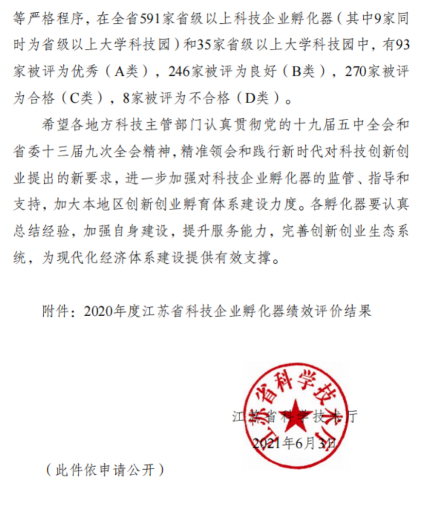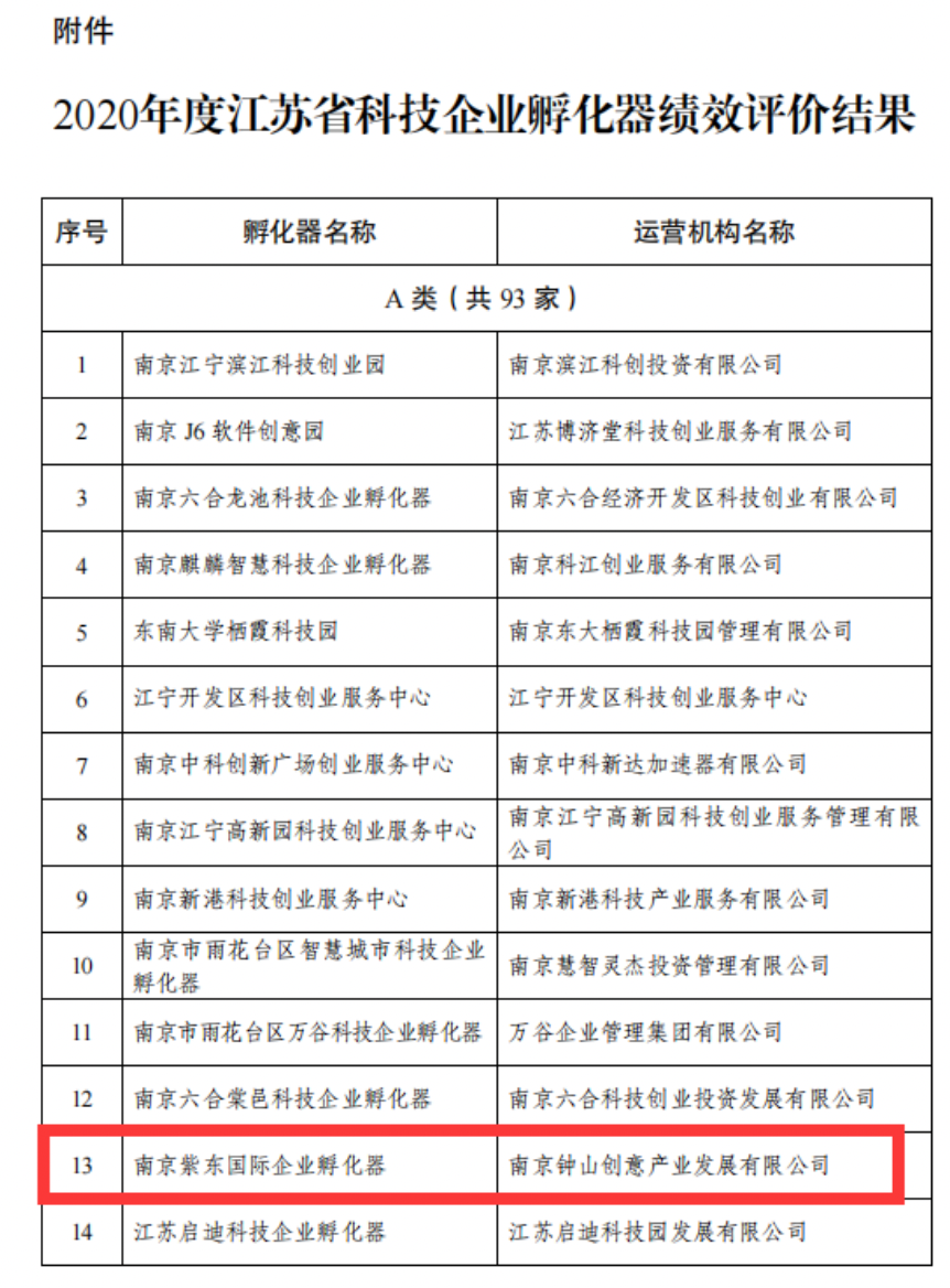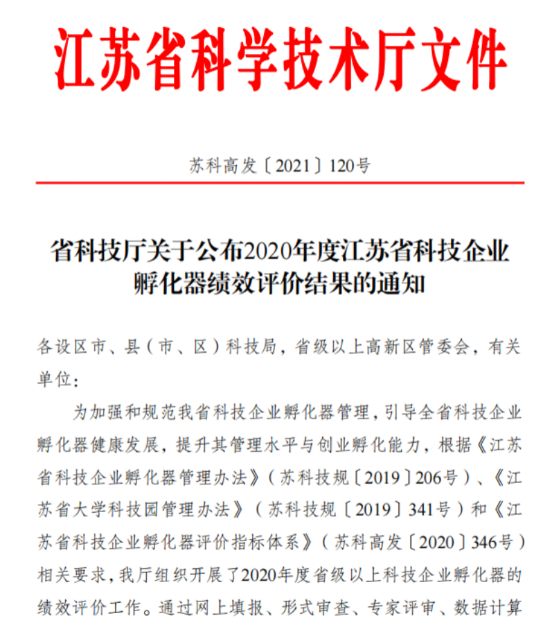 驕陽(yáng)似火,激情澎湃的六月,在迎接2021南京創(chuàng)新周盛大開幕之際,江蘇省科技廳公布了2020年度江蘇省科技企業(yè)孵化器績(jī)效評(píng)價(jià)結(jié)果,棲霞高新區(qū)自有的三個(gè)國(guó)家級(jí)孵化器南京金港科技創(chuàng)業(yè)中心、江蘇生命科技創(chuàng)新園國(guó)際生物醫(yī)藥孵化器和南京紫東國(guó)際企業(yè)孵化器從591家省級(jí)以上科技企業(yè)孵化器中脫穎而出,再次全部獲評(píng)優(yōu)秀(A類)等級(jí),實(shí)現(xiàn)連續(xù)兩年,績(jī)效三優(yōu)的突破性成績(jī)。