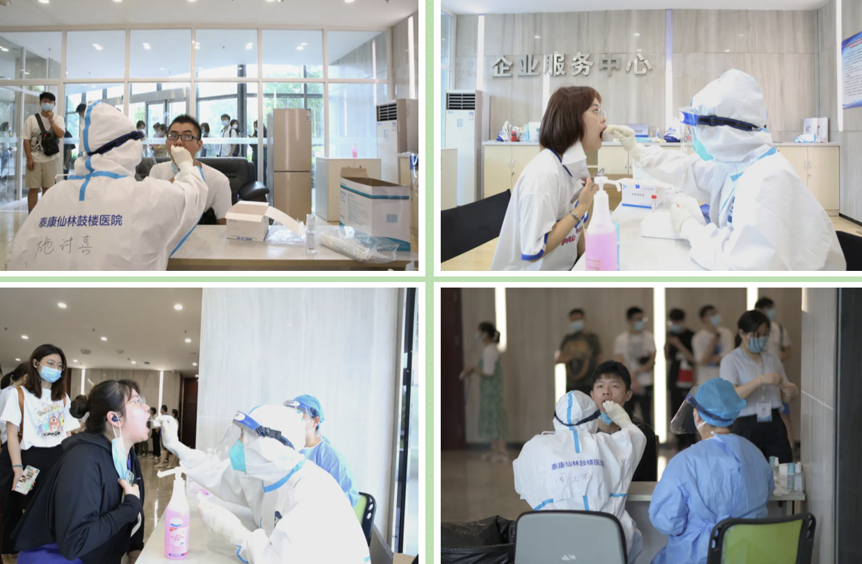 7月25日,棲霞高新區(qū)在紫東創(chuàng)意園、金港科創(chuàng)園、生命科技園再次設立集中檢測點,為園區(qū)企業(yè)職工和周邊居民開展二次核酸檢測。