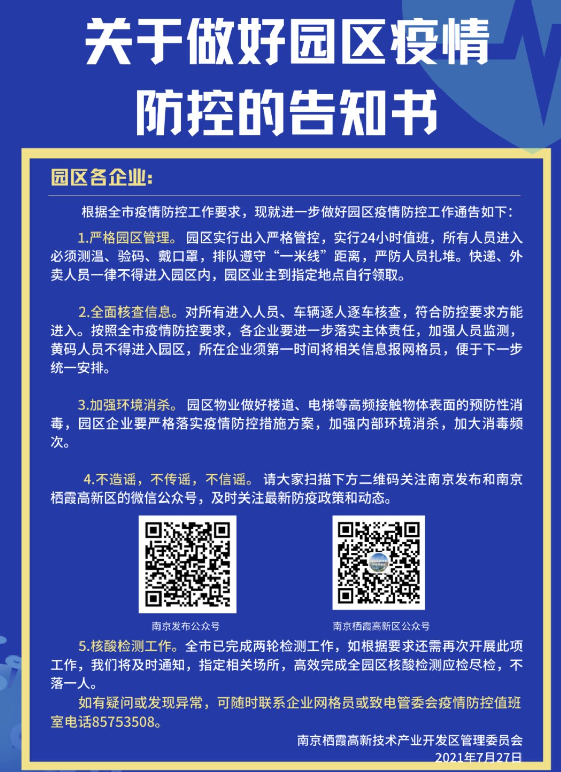 【戰(zhàn)疫情】棲霞高新區(qū)疫情防控告知書,請查收!