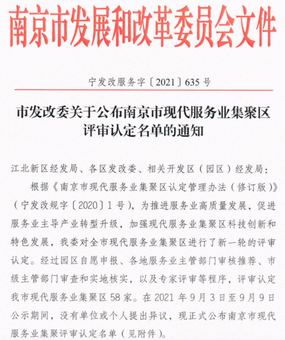 近日,南京市發(fā)改委公布了南京市現(xiàn)代服務(wù)業(yè)集聚區(qū)評審認定名單,經(jīng)過前期棲霞區(qū)發(fā)改委審核推薦、南京市發(fā)改委組織專家組評審及實地核查等程序,最終棲霞高新區(qū)3個直管園區(qū)江蘇生命科技創(chuàng)新園、南京金港科技創(chuàng)業(yè)園、南京紫東國際創(chuàng)意園全部通過認定。