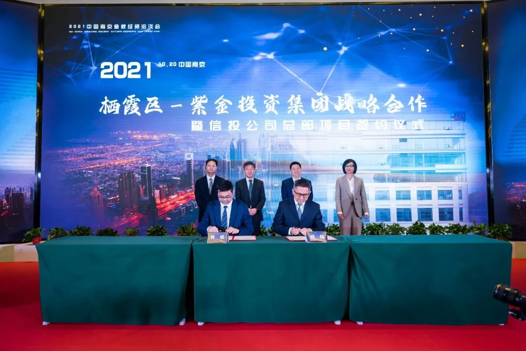 隨后,棲霞區(qū)委常委、副區(qū)長(zhǎng)郭昌標(biāo),與南京紫金投資集團(tuán)有限責(zé)任公司副總經(jīng)理萬舜共同簽訂“棲霞區(qū)人民政府與紫金投資集團(tuán)戰(zhàn)略合作暨信投公司總部項(xiàng)目合作協(xié)議”。