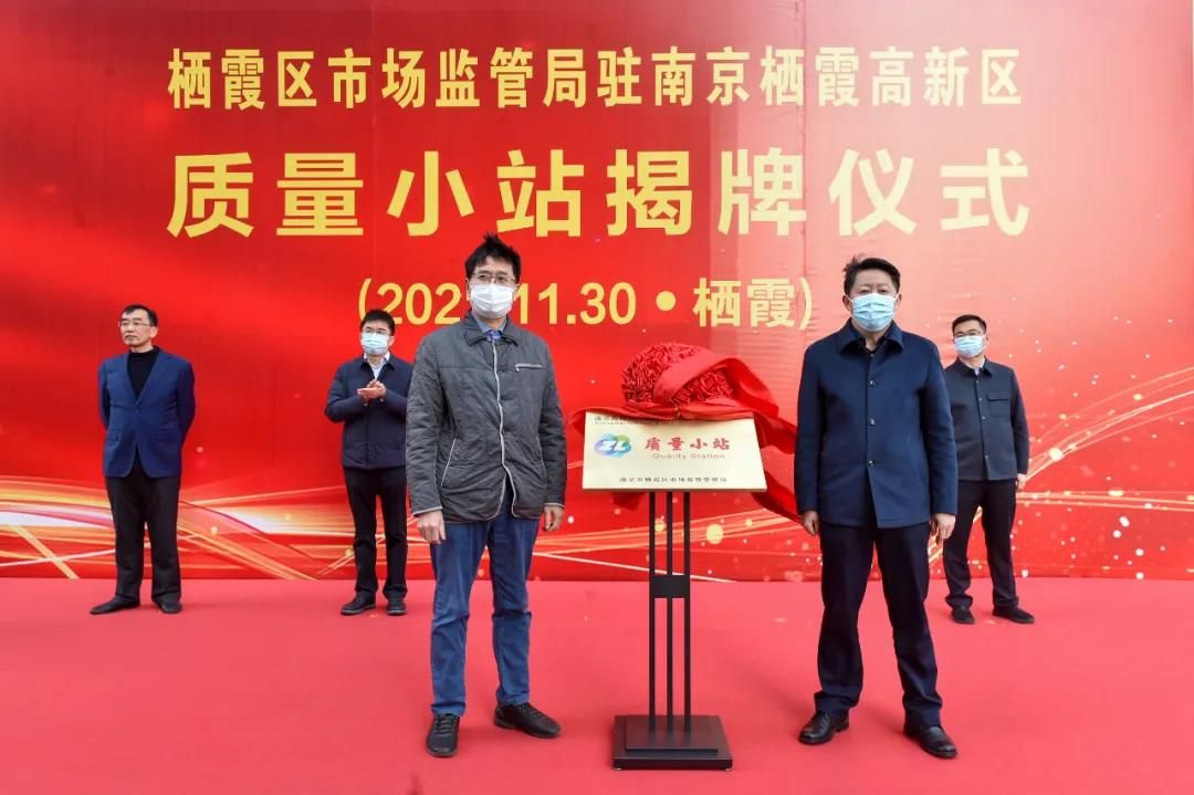 南京市市場(chǎng)監(jiān)督管理局二級(jí)巡視員張建平與棲霞區(qū)委常委、副區(qū)長(zhǎng)郭昌標(biāo)一同為“質(zhì)量小站”揭牌。
