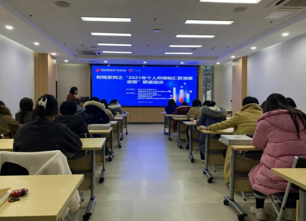 2021年個(gè)人所得稅匯算清繳政策解讀培訓(xùn)會(huì)由南京市企業(yè)服務(wù)中心、棲霞高新區(qū)管委會(huì)主辦,南京市企業(yè)服務(wù)聯(lián)盟、棲霞高新區(qū)企業(yè)服務(wù)中心、棲霞高新區(qū)商會(huì)、南京尚爾博財(cái)務(wù)信息咨詢有限公司承辦,多家企業(yè)代表參加本次培訓(xùn)。
