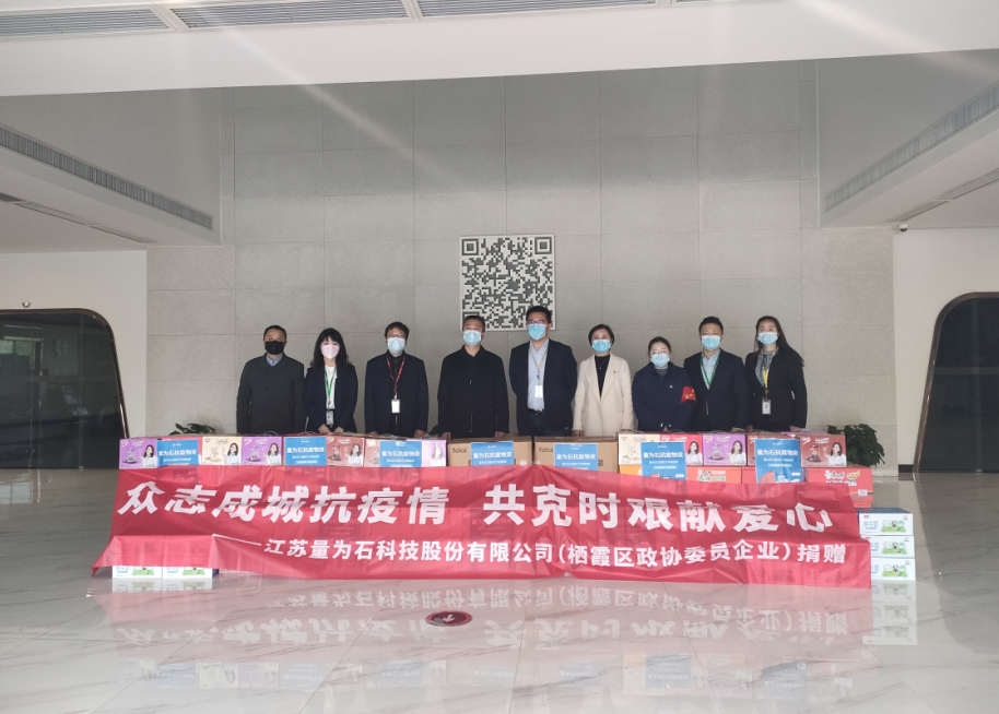 江蘇量為石科技股份有限公司捐贈了150箱食品和10000只口罩;