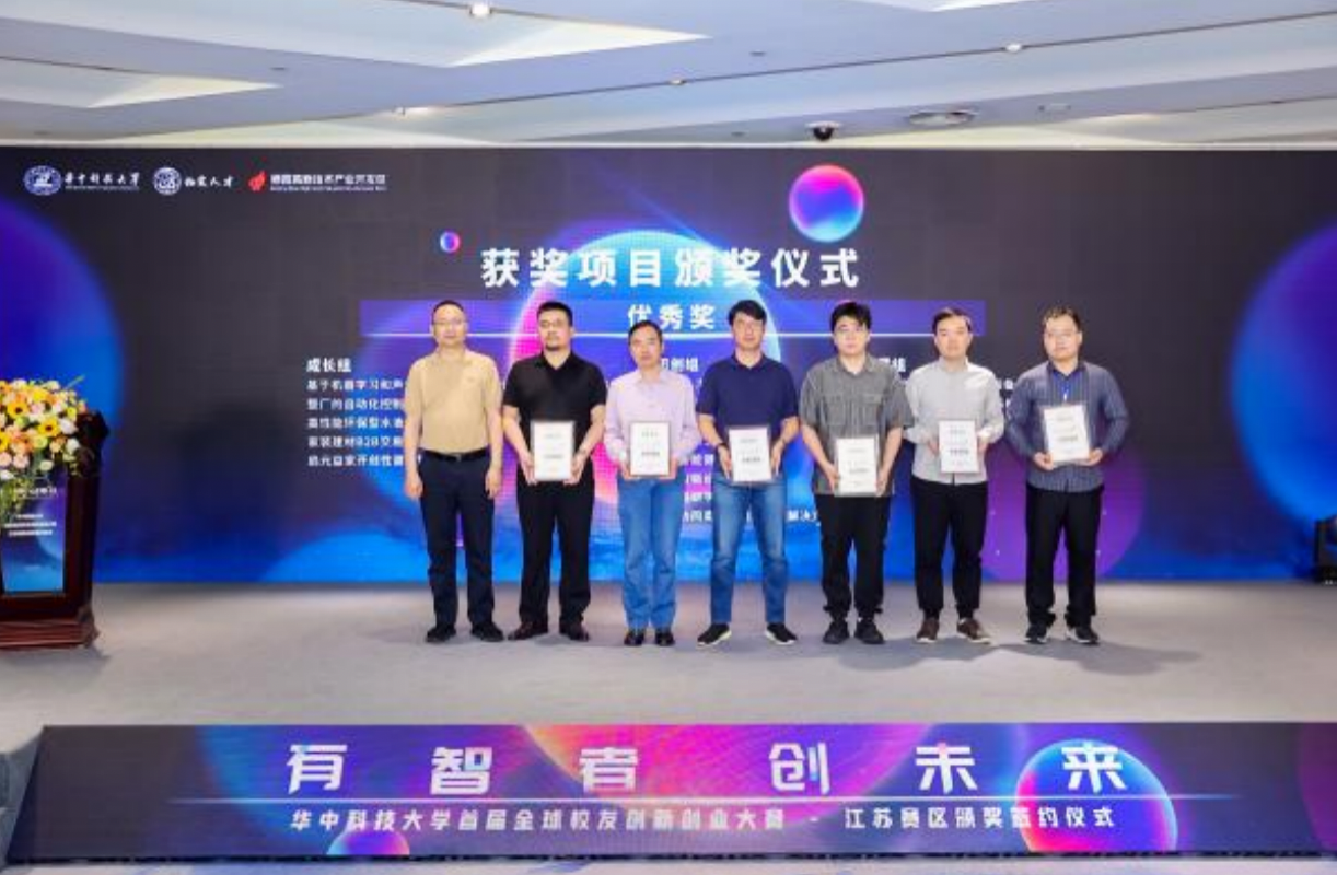 華中科技大學全球校友創(chuàng)新創(chuàng)業(yè)大賽東部賽區(qū)評委會主席、中電??导瘓F監(jiān)事會主席曾耘為6個優(yōu)秀項目代表頒獎。