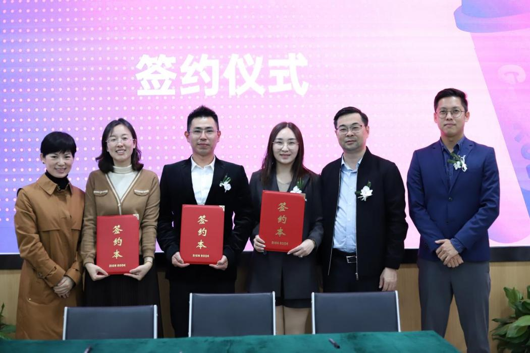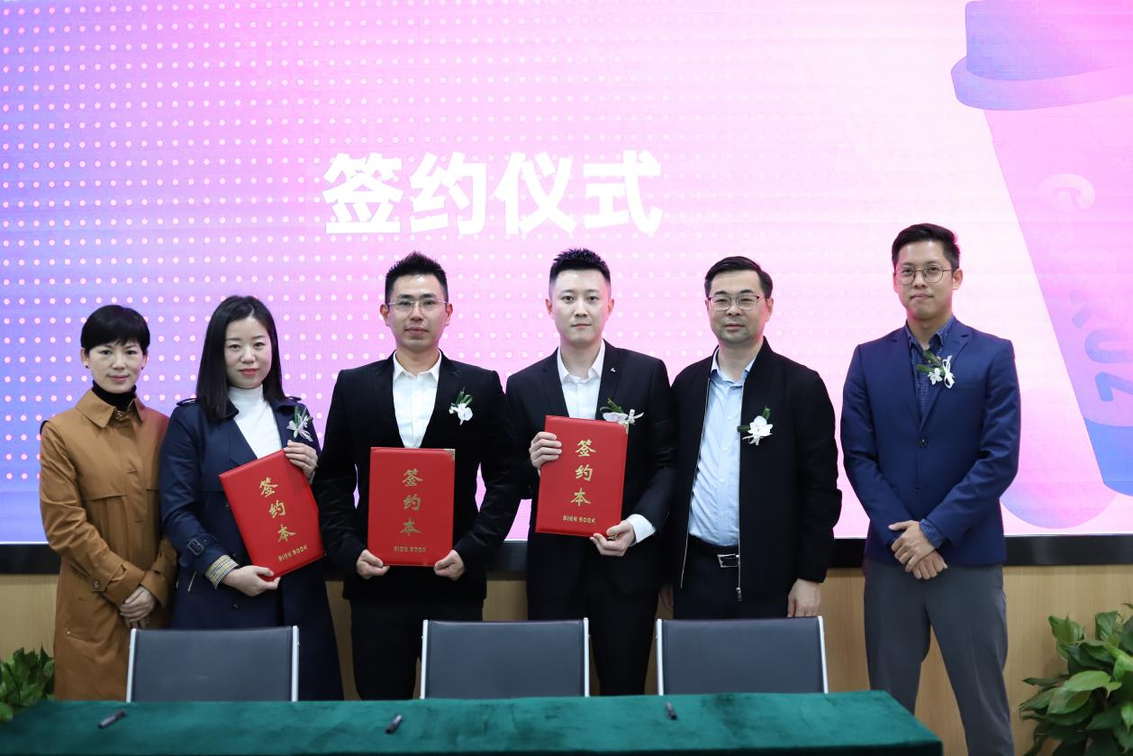 蘇州實桂沅食品有限公司總經(jīng)理劉勝玉、昆山吉有家便利連鎖有限公司總經(jīng)理劉亞偉與柏紋咖啡創(chuàng)始人陳宥熹簽訂供應(yīng)協(xié)議。