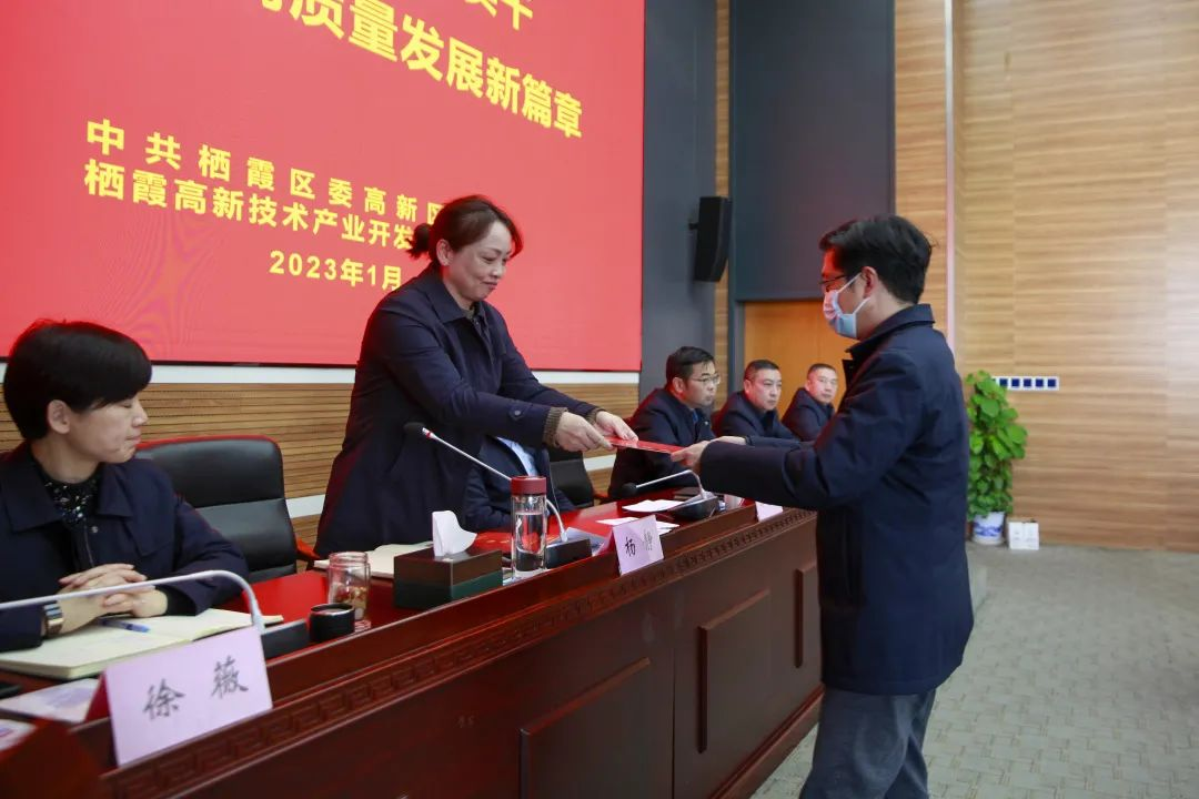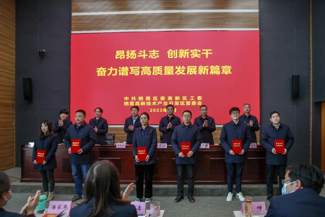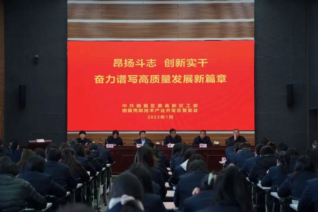 虎振雄風(fēng)留浩氣,玉兔迎春啟新程。1月31日,棲霞高新區(qū)召開2023年全體員工大會。會議認(rèn)真?zhèn)鬟_(dá)南京市委市政府“推動(dòng)高質(zhì)量發(fā)展 爭當(dāng)示范引領(lǐng)”動(dòng)員會及棲霞區(qū)“三區(qū)深化作風(fēng)建設(shè)推動(dòng)高質(zhì)量發(fā)展走在前列”動(dòng)員會會議精神,號召全體員工以更加昂揚(yáng)的奮斗姿態(tài)和更加飽滿的工作熱情,擔(dān)當(dāng)新作為,創(chuàng)造新業(yè)績,全力推動(dòng)園區(qū)經(jīng)濟(jì)發(fā)展再上新臺階。棲霞區(qū)委常委、副區(qū)長、高新區(qū)黨工委書記郭昌標(biāo),管委會主任黃斌,常務(wù)副書記楊靜,紀(jì)工委書記顧戟,副主任徐薇、劉云松,高新區(qū)各部門、子公司主要負(fù)責(zé)人及全體員工參加會議。