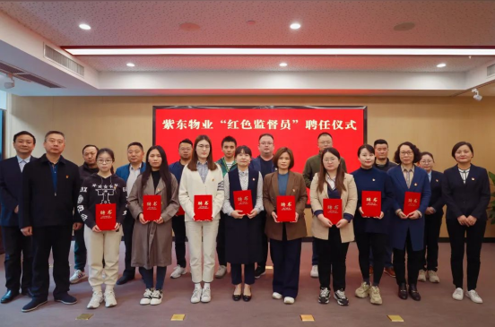 棲霞高新區(qū)管委會(huì)副主任劉云松與紫東物業(yè)黨支部書(shū)記、公司總經(jīng)理黃婷共同為紅色監(jiān)督員頒發(fā)聘書(shū)。