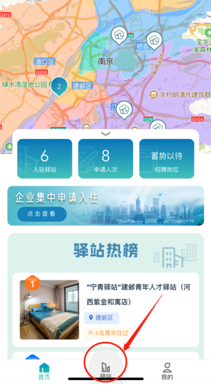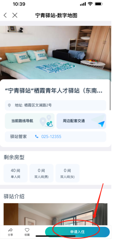 進(jìn)入“數(shù)字地圖”頁(yè)面后,選擇想入住的驛站站點(diǎn),點(diǎn)擊“申請(qǐng)入住”圖標(biāo)。