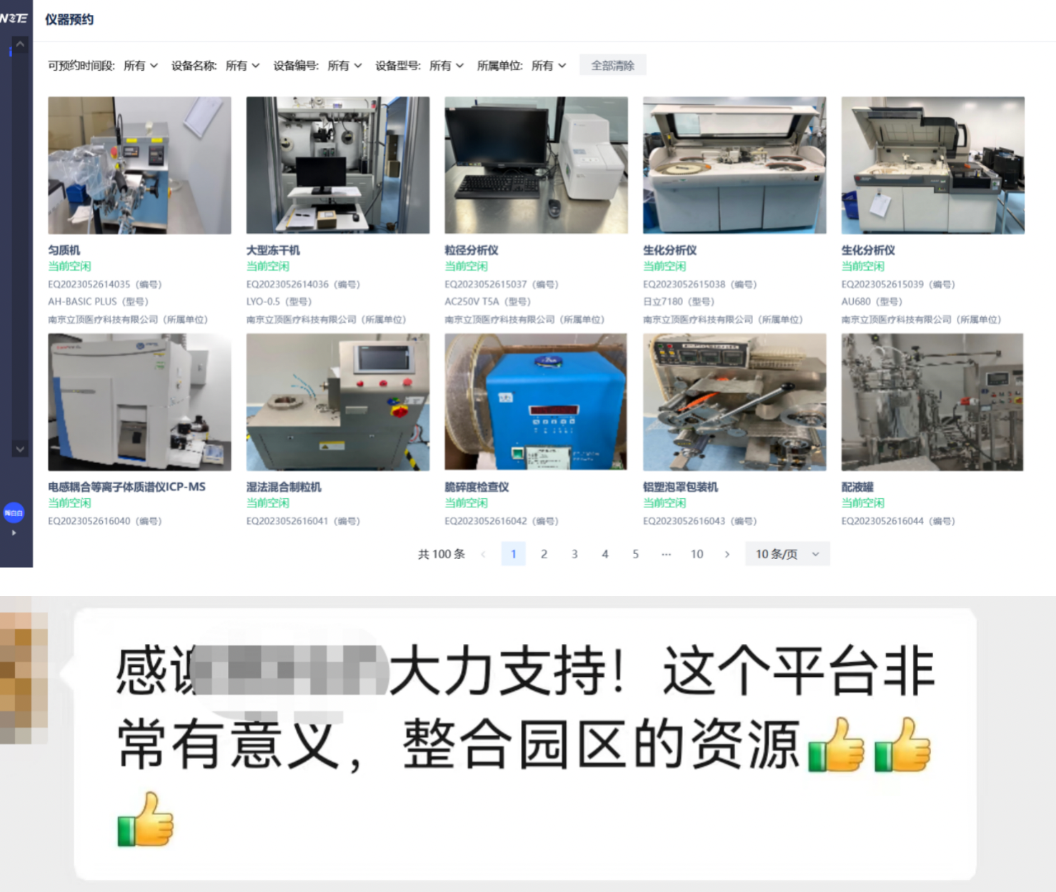 通過信息整合,園區(qū)主動搭建大型科學儀器共享服務平臺,已吸引近十家企業(yè)的上百臺大型科學儀器加入上線。建立了清晰的儀器設備共享管理體系,實現(xiàn)信息發(fā)布、用前預約、安全準入等多元化、自動化的管理。