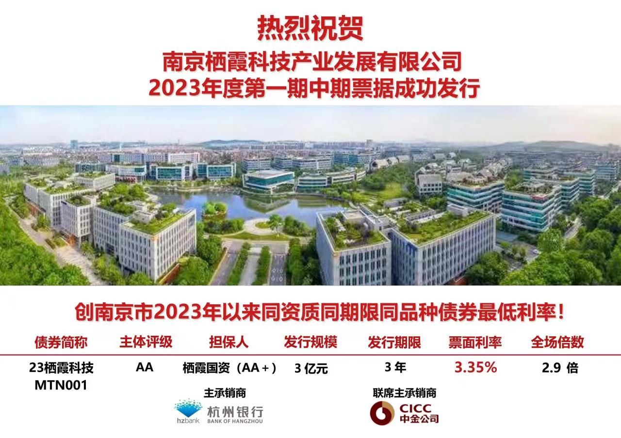 棲霞高新區(qū)2023年第一期中票于8月28日成功發(fā)行,總額3億元,期限三年,票面利率3.35%,創(chuàng)南京市2023年以來(lái)同資質(zhì)同期限同品種債券最低利率。通過(guò)置換前期債券和銀行貸款(利率4.3%),每年節(jié)約利息和承銷費(fèi)共303萬(wàn)元,三年節(jié)約909萬(wàn)元!