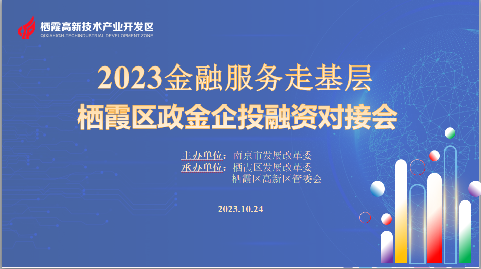秋景如畫,疊翠流金。10月24日下午,“2023金融服務(wù)走基層——棲霞區(qū)政金企投融資對接會”在紫東國際創(chuàng)意園企業(yè)服務(wù)中心舉辦。南京市發(fā)改委財金處處長張潯愷、副處長童靜,棲霞區(qū)發(fā)改委副主任何蜀君,棲霞高新區(qū)紀(jì)工委書記顧戟,銀行、證券、擔(dān)保、創(chuàng)投等多家金融機(jī)構(gòu)和11家有融資需求的園區(qū)重點企業(yè)代表參加本次活動。
