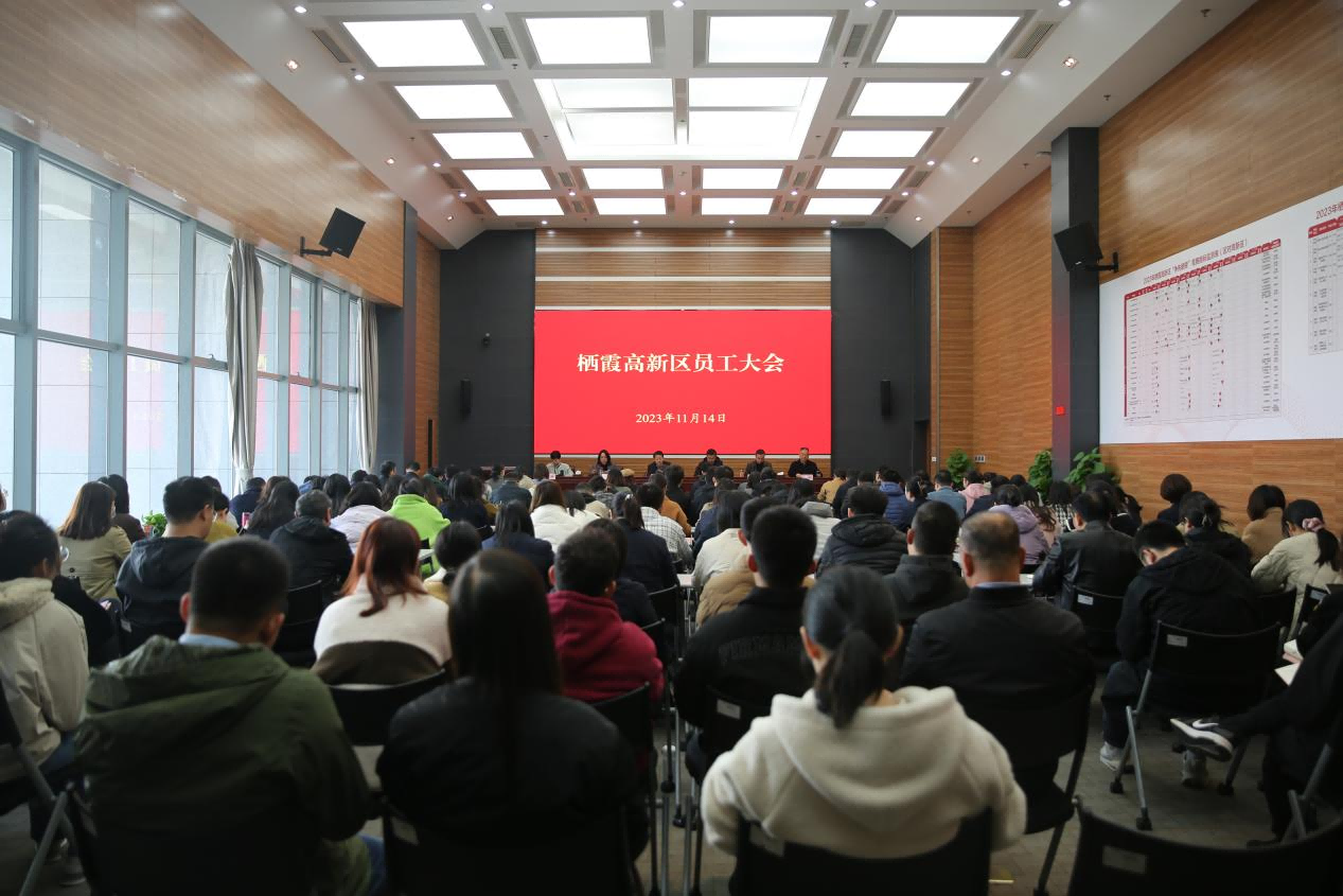 11月14日,棲霞高新區(qū)召開員工大會,全面盤點2023年工作,謀劃研究2024年工作思路。區(qū)委常委、常務副區(qū)長、棲霞高新區(qū)工委書記郭昌標,高新區(qū)部長以上領導、各部門全體員工,子公司班子成員參加會議。工委常務副書記楊靜主持會議。