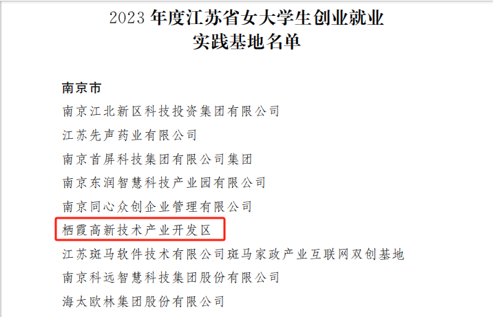 近日,棲霞高新區(qū)成功入選2023年度江蘇省女大學(xué)生創(chuàng)業(yè)就業(yè)實(shí)踐基地。