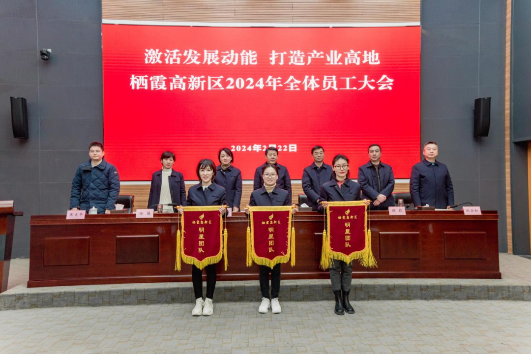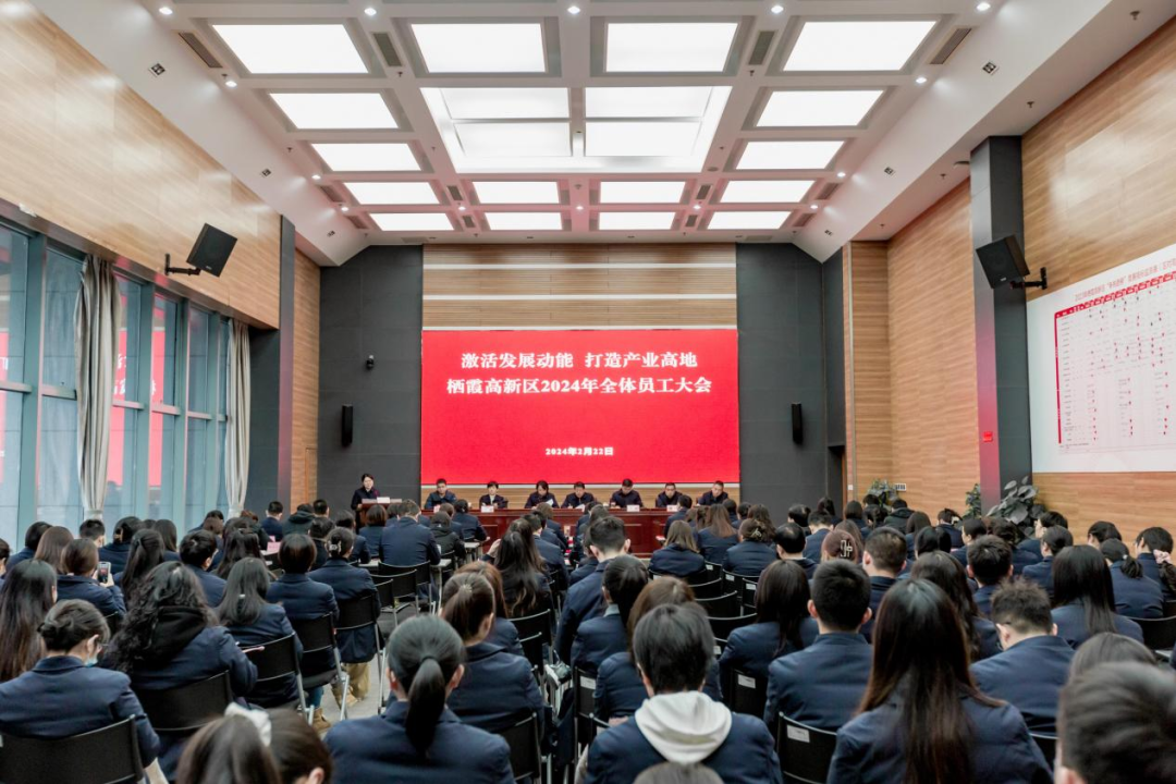 吹響號角勇爭先,奮力實干開新局。2月22日,棲霞高新區(qū)召開2024年全體員工大會,回顧2023年工作成效,部署全年工作,總結(jié)經(jīng)驗,表揚先進(jìn),激勵干部職工對標(biāo)競進(jìn)、比學(xué)趕超。區(qū)委常委、區(qū)政府常務(wù)副區(qū)長,棲霞高新區(qū)黨工委書記郭昌標(biāo),高新區(qū)部長以上領(lǐng)導(dǎo)、各部門全體員工、子公司班子成員參加會議。黨工委常務(wù)副書記楊靜主持會議。