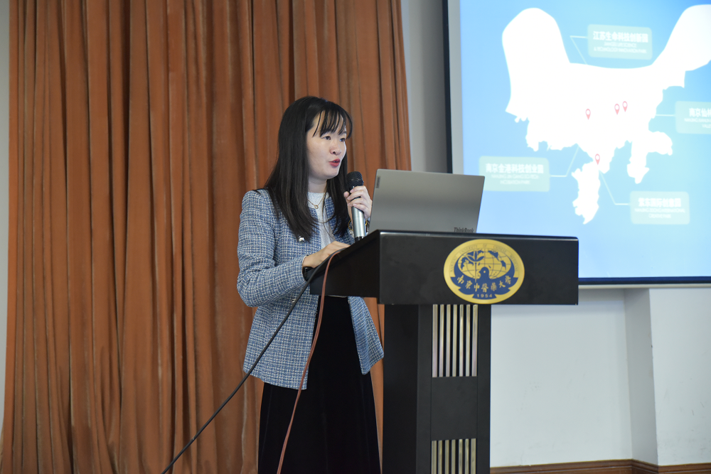 棲霞高新區(qū)項目開發(fā)科科長吳學琴推介了棲霞高新區(qū)創(chuàng)新創(chuàng)業(yè)環(huán)境,園區(qū)以國家級、省級、市級創(chuàng)業(yè)基地為大學生特色創(chuàng)業(yè)載體,搭建產(chǎn)融支持體系,為創(chuàng)業(yè)者提供一站式服務。